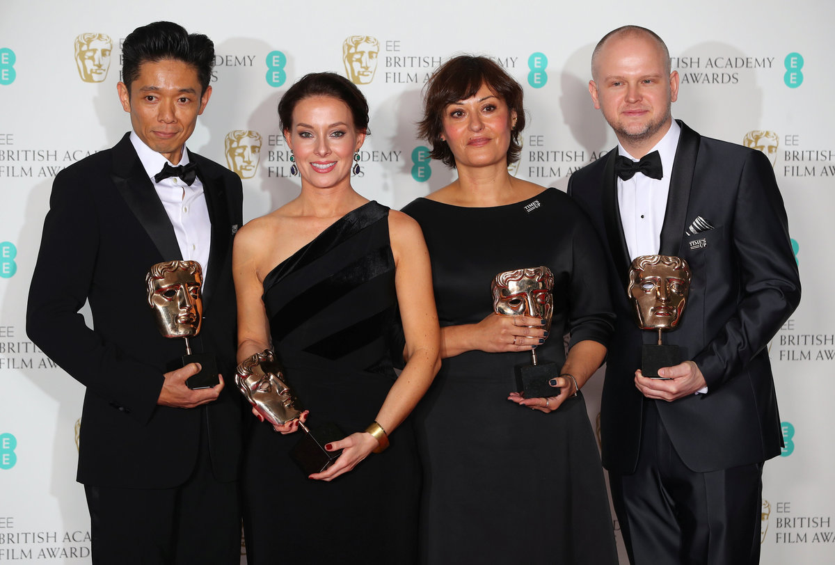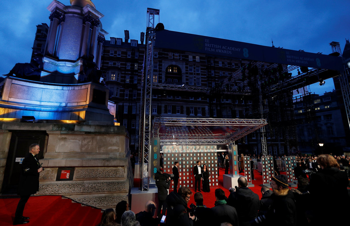 Martin McDonagh, Peter Czernin, Sam Rockwell and Graham Broadbent, pose with Frances McDormand, as they hold their trophies for Best Film for 'Three Billboards Outside Ebbing Missouri' at the British Academy of Film and Television Awards (BAFTA) at the Royal Albert Hall in London, Britain February 18, 2018. REUTERS/Hannah McKayAlex Gibson, Richard King, Gregg Landaker and Gary A. Rizzo hold their awards for Sound for the film Dunkirk at the British Academy of Film and Television Awards (BAFTA) at the Royal Albert Hall in London, Britain, February 18, 2018. REUTERS/Hannah McKayLily James and Gemma Arterton pose in the press room during the British Academy of Film and Television Awards (BAFTA) at the Royal Albert Hall in London, Britain February 18, 2018. REUTERS/Hannah McKayRebecca Ferguson arrives at the British Academy of Film and Television Awards (BAFTA) at the Royal Albert Hall in London, Britain, February 18, 2018. REUTERS/Peter NichollsAngelina Jolie arrives at the British Academy of Film and Television Awards (BAFTA) at the Royal Albert Hall in London, Britain, February 18, 2018. REUTERS/Hannah McKayAllison Janney holds her award for Supporting Actress for I, Tonya at the British Academy of Film and Television Awards (BAFTA) at the Royal Albert Hall in London, Britain, February 18, 2018. REUTERS/Hannah McKayWillem Dafoe and his wife Giada Colagrande arrive at the British Academy of Film and Television Awards (BAFTA) at the Royal Albert Hall in London, Britain, February 18, 2018. REUTERS/Hannah McKayGemma Arterton, Eileen Pullen and Sheila Douglass arrive for the British Academy of Film and Television Awards (BAFTA) at the Royal Albert Hall in London, Britain, February 18, 2018. REUTERS/Hannah McKayAlexandre Desplat holds his award for Original Music at the British Academy of Film and Television Awards (BAFTA) at the Royal Albert Hall in London, Britain, February 18, 2018. REUTERS/Hannah McKayPresenters Orlando Bloom and Gugu Mbatha-Raw stand with James Ivory as he holds his award for Adapted Screenplay for Call Me By Your Name at the British Academy of Film and Television Awards (BAFTA) at the Royal Albert Hall in London, Britain February 18, 2018. REUTERS/Hannah McKayPeter Czernin, Martin McDonagh and Graham Broadbent hold their awards for Outstanding British Film for Three Billboards Outside Ebbing, Missouri at the British Academy of Film and Television Awards (BAFTA) at the Royal Albert Hall in London, Britain February 18, 2018. REUTERS/Hannah McKayChiwetel Ejiofor and Frances Aaternir arrive for the British Academy of Film and Television Awards (BAFTA) at the Royal Albert Hall in London, Britain, February 18, 2018. REUTERS/Hannah McKayMargot Robbie arrives at the British Academy of Film and Television Awards (BAFTA) at the Royal Albert Hall in London, Britain, February 18, 2018. REUTERS/Hannah McKaySaoirse Ronan arrives for the British Academy of Film and Television Awards (BAFTA) at the Royal Albert Hall in London, Britain, February 18, 2018. REUTERS/Hannah McKayOrlando Bloom arrives at the British Academy of Film and Television Awards (BAFTA) at the Royal Albert Hall in London, Britain, February 18, 2018. REUTERS/Hannah McKayHugh Grant and Anna Eberstein arrive for the British Academy of Film and Television Awards (BAFTA) at the Royal Albert Hall in London, Britain, February 18, 2018. REUTERS/Hannah McKayCressida Bonas arrives at the British Academy of Film and Television Awards (BAFTA) at the Royal Albert Hall in London, Britain, February 18, 2018. REUTERS/Hannah McKaySir Patrick Stewart arrives at the British Academy of Film and Television Awards (BAFTA) at the Royal Albert Hall in London, Britain, February 18, 2018. REUTERS/Hannah McKayIsabell Kristensen arrive for the British Academy of Film and Television Awards (BAFTA) at the Royal Albert Hall in London, Britain, February 18, 2018. REUTERS/Hannah McKayKristin Scott Thomas arrives for the British Academy of Film and Television Awards (BAFTA) at the Royal Albert Hall in London, Britain, February 18, 2018. REUTERS/Hannah McKayNatalie Dormer arrives at the British Academy of Film and Television Awards (BAFTA) at the Royal Albert Hall in London, Britain, February 18, 2018. REUTERS/Hannah McKayOctavia Spencer arrives at the British Academy of Film and Television Awards (BAFTA) at the Royal Albert Hall in London, Britain, February 18, 2018. REUTERS/Hannah McKayHofit Golan arrives for the British Academy of Film and Television Awards (BAFTA) at the Royal Albert Hall in London, Britain February 18, 2018. REUTERS/Hannah McKayKazuhiro Tsuji, Lucy Sibbick, Ivana Primorac and David Malinowski holds their awards for Make Up and Hair for the film Darkest Hour at the British Academy of Film and Television Awards (BAFTA) at the Royal Albert Hall in London, Britain, February 18, 2018. REUTERS/Hannah McKay