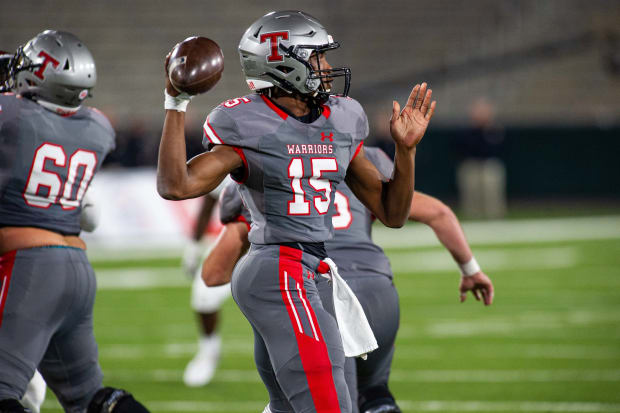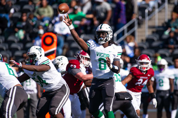 One of the sleepers of the event from a recruiting attention standpoint, there are more questions than answers following Mix's performance to cap his prep career with a Class 4A state championship. The big, physical specimen has a control in the pocket and can get velocity on the football without much motion or time. But it was when he took something off of the football, hi-lowing a linebacker and safety combination or making plays on the move that impressed on Friday. His MVP performance, where he threw for 277 yards and three touchdowns, even included a hurdle over a defender for good measure.