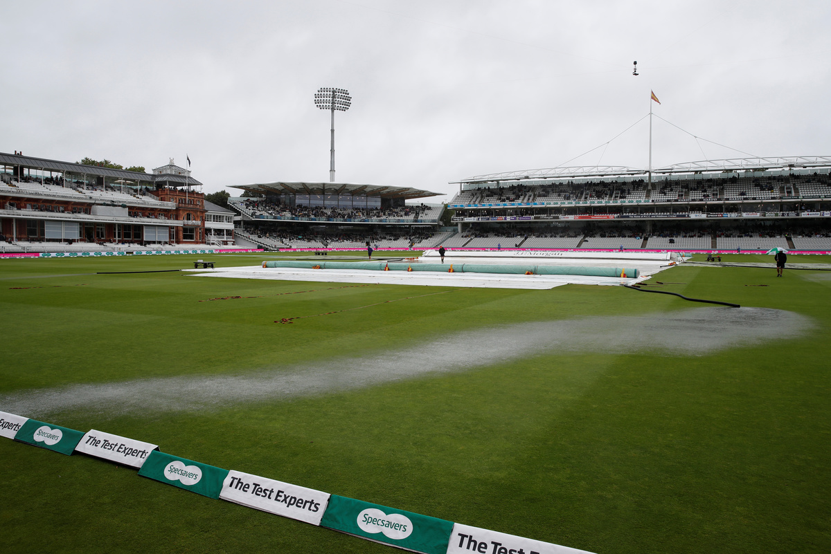 Cricket - Ashes 2019 - Second Test - England v Australia - Lord's Cricket Ground, London, Britain - August 14, 2019 Australia's Cameron Bancroft and batting coach Graeme Hick on the pitch before play Action Images via Reuters/Paul ChildsCricket - Ashes 2019 - Second Test - England v Australia - Lord's Cricket Ground, London, Britain - August 14, 2019 General view of covers on the field as rain delays play Action Images via Reuters/Paul ChildsCricket - Ashes 2019 - Second Test - England v Australia - Lord's Cricket Ground, London, Britain - August 14, 2019 Groundstaff work on the pitch before play Action Images via Reuters/Paul ChildsCricket - Ashes 2019 - Second Test - England v Australia - Lord's Cricket Ground, London, Britain - August 14, 2019 Spectators as rain delays play Action Images via Reuters/Paul ChildsCricket - Ashes 2019 - Second Test - England v Australia - Lord's Cricket Ground, London, Britain - August 14, 2019 Australia's Tim Paine and Nathan Lyon talk with Umpire Aleem Dar on the pitch before play Action Images via Reuters/Paul ChildsCricket - Ashes 2019 - Second Test - England v Australia - Lord's Cricket Ground, London, Britain - August 14, 2019 A spectator with an umbrella as rain delays play Action Images via Reuters/Paul Childs