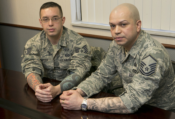 Both Rivera, 37, and Knipfer, 31, came into the Air Force with tattoos, and now have more than either can count.