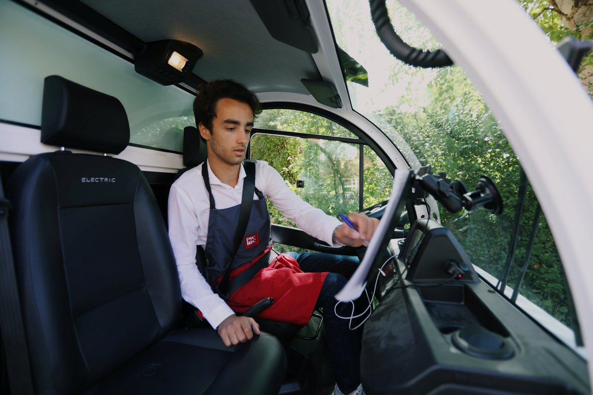 Utrecht, Netherlands (Reuters) - Coming to a stop outside yet another front door on Utrecht's narrow streets, 25-year-old Susann Huber gets out of her electric minivan, pulls out a crate of groceries and hands them over to a waiting customer.