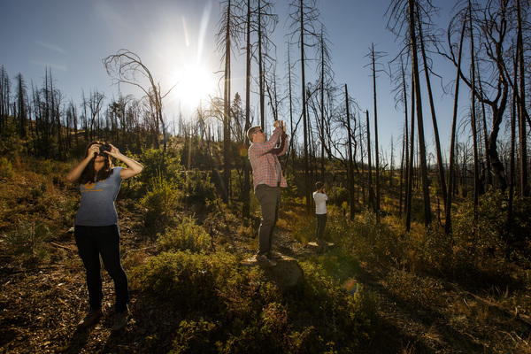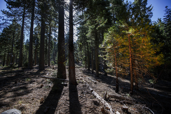 For Blue Forest's founders, a September visit to the Stanislaus National Forest was a chance to see up close the difference between a thinned forest and an overgrown one. Crews in 2012 thinned out a section of the forest near the town of Pinecrest but didn't touch an area along a dry creek bed.