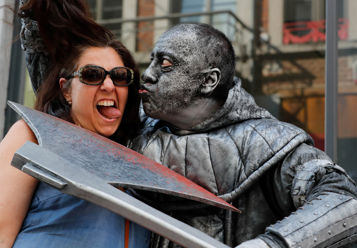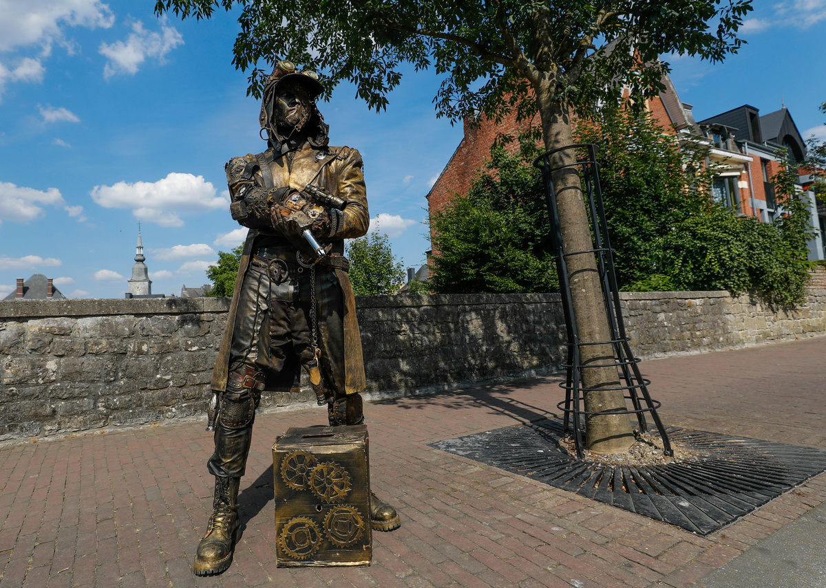 Living statues are a common sight in many city centers, but it is rare to see such a diverse range of this peculiar form of street art for which performers must keep still for painfully long periods of time to create the desired illusion.