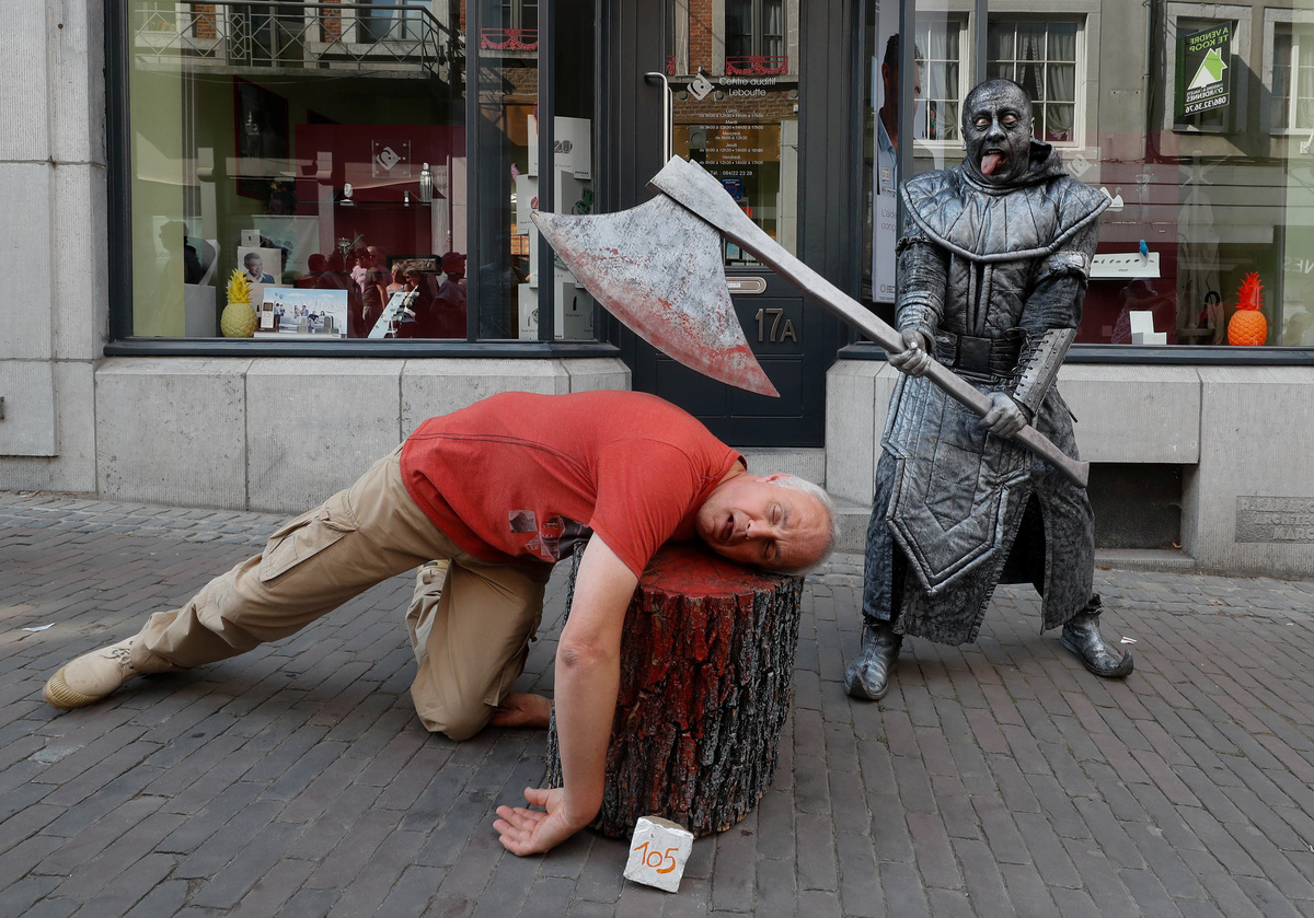 Artists called "Le couple en chocolat" take part in the festival "Statues en Marche" in Marche-en-Famenne, Belgium, July 22, 2018. REUTERS/Yves HermanAn artist called "L'Amazone" takes part in the festival "Statues en Marche" in Marche-en-Famenne, Belgium, July 22, 2018. REUTERS/Yves HermanAn artist called "Leonard De Vinci" takes part in the festival "Statues en Marche" in Marche-en-Famenne, Belgium, July 22, 2018. REUTERS/Yves HermanAn artist called "Levitating Statue" takes part in the festival "Statues en Marche" in Marche-en-Famenne, Belgium, July 22, 2018. REUTERS/Yves HermanAn artist called "Levitating Statue" takes part in the festival "Statues en Marche" in Marche-en-Famenne, Belgium, July 22, 2018. REUTERS/Yves HermanAn artist called "La Sirene/The mermaid" takes part in the festival "Statues en Marche" in Marche-en-Famenne, Belgium, July 22, 2018. REUTERS/Yves HermanAn artist called "La Bohemienne" takes part in the festival "Statues en Marche" in Marche-en-Famenne, Belgium, July 22, 2018. REUTERS/Yves HermanAn artist called "Le Gouverneur" takes part in the festival "Statues en Marche" in Marche-en-Famenne, Belgium, July 22, 2018. REUTERS/Yves HermanAn artist called "Albert Eisntein" takes part in the festival "Statues en Marche" in Marche-en-Famenne, Belgium, July 22, 2018. REUTERS/Yves HermanArtists called "Les Emmeles" take part in the festival "Statues en Marche" in Marche-en-Famenne, Belgium, July 22, 2018. REUTERS/Yves HermanArtists called "Les hommes de papier" take part in the festival "Statues en Marche" in Marche-en-Famenne, Belgium, July 22, 2018. REUTERS/Yves HermanAn artist called "Le Bourreau/The Headsman" takes part in the festival "Statues en Marche" in Marche-en-Famenne, Belgium, July 22, 2018. REUTERS/Yves Herman An artist called "Le Bourreau/The Headsman" takes part in the festival "Statues en Marche" in Marche-en-Famenne, Belgium, July 22, 2018. REUTERS/Yves HermanAn artist called "Le Facteur/The Postman" takes part in the festival "Statues en Marche" in Marche-en-Famenne, Belgium, July 22, 2018. REUTERS/Yves HermanAn artist called "Kiberg Pilot" takes part in the festival "Statues en Marche" in Marche-en-Famenne, Belgium, July 22, 2018. REUTERS/Yves HermanAn artist called "Le Bourreau/The Headsman" takes part in the festival "Statues en Marche" in Marche-en-Famenne, Belgium, July 22, 2018. REUTERS/Yves HermanAn artist called "Kiberg Pilot" takes part in the festival "Statues en Marche" in Marche-en-Famenne, Belgium, July 22, 2018. REUTERS/Yves Herman