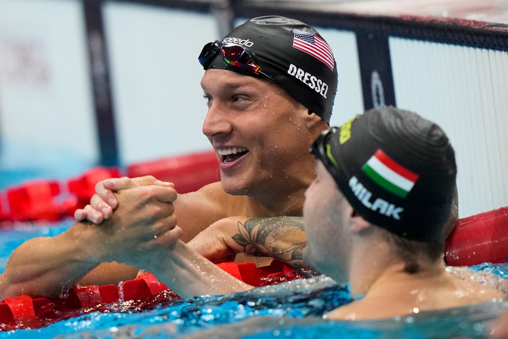 Dressel led right from the start and held off Hungary’s Kristof Milak to touch in 49.45 seconds, breaking the mark of 49.50 that the American set at the 2019 world championships in Gwangju.