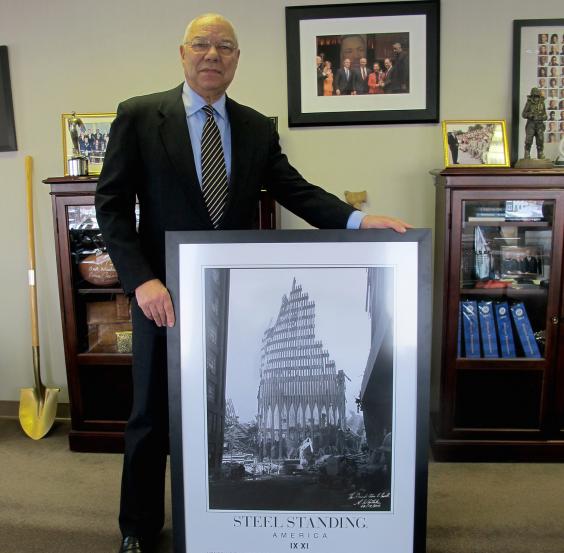 Whitaker has promoted his iconic image in the years that have passed and presented copies of the photograph to everyone from Colin Powell, who was Secretary of State at the time Al-Qaeda struck. To him, the image he captured before the salvage crews tore it down, bore a sense of resilience and strength.