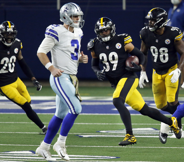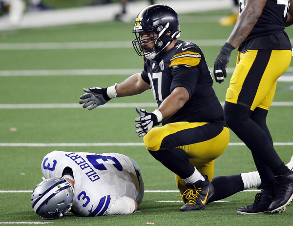 But the Cowboys came right back on the ensuing possession and looked as though they would pad their lead, thanks to a 64-yard kick return by Rico Dowdle on a play where the Steelers got to kick off from the 45. But, on third-and-goal from the 7, Gilbert was hit by Heyward and linebacker Robert Spillane and Fitzpatrick intercepted his wobbly pass in the end zone.