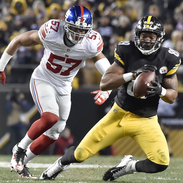 Rookie safety Sean Davis intercepted his first pass deep in Steelers territory to thwart yet another New York Giants scoring try early in the fourth quarter. Lawrence Timmons intercepted a pass at the 2 that helped turn the game around in the second quarter.