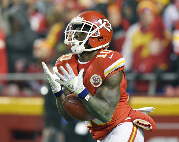 Kansas City scored their first touchdown with 6:13 left in the game on a 57-yard touchdown pass from Alex Smith to De'Anthony Thomas.