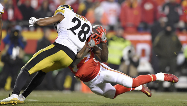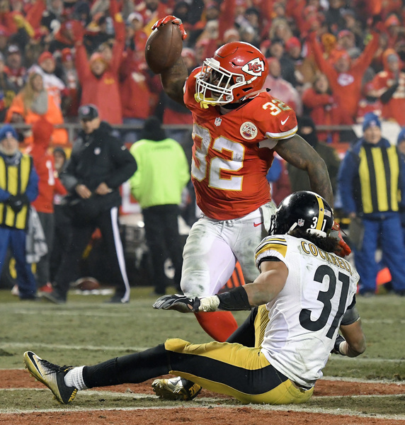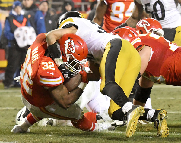 However, as the fourth quarter started, the Steelers' defense held again. The Chiefs worked their way to a third down at the three. Hunt got a yard and then Sean Davis broke up a pass in the end zone on fourth down.