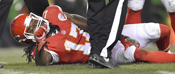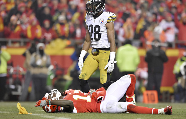 Bell was out of the game when Ben Roethlisberger's pass for Antonio Brown was intercepted by cornerback Marcus Peters and returned 16 yards to the Steelers' 48 on their next series.