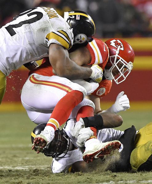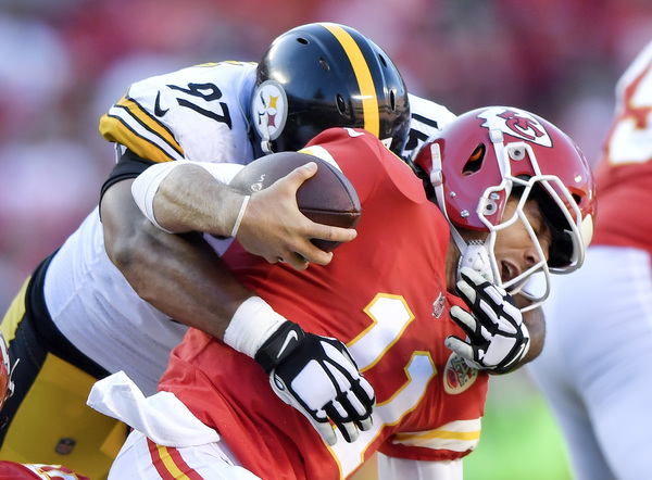 The Chiefs were poised on the Steelers' 40 when James Harrison, on third down, sacked Alex Smith back to the 48 with 58 seconds to go.