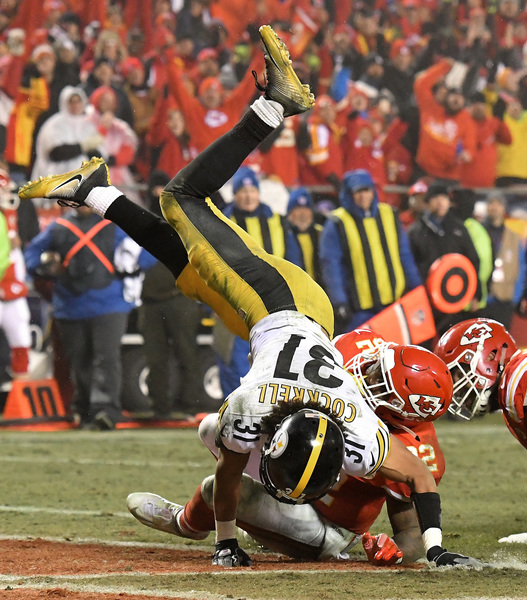 However, neither were the Chiefs through. Two deep passes on their next series gave them a first down at the Steelers' 15 but they could gain no more and rookie Harrison Butker kicked a 33-yard field goal.