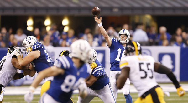 Twice the Steelers defense stopped separate Colts' series on fourth down at the 1-yard-line. Playing without starting quarterback Andrew Luck and losing a handful of other starters to injury as the game wore on, the Colts (5-6) hung on gamely through three quarters but scored only once, and that was after a fake punt kept the drive going.