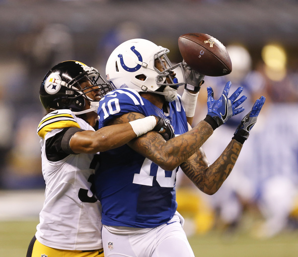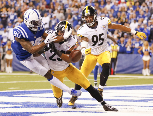 Indy came back to score, thanks to a roughing-the-passer penalty on Lawrence Timmons and a blitz by the Steelers that did not work. Cornerback William Gay was part of a five-man blitz, but Tolzien threw quickly to T.Y. Hilton over the middle. Hilton beat Timmons to catch the ball at the 2 for a 32-yard pickup.