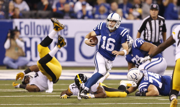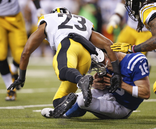 Quarterback Scott Tolzien, making his third NFL start and first in three years, was sacked three times and intercepted twice by the Steelers. Mike Mitchell picked that one off in the fourth quarter and returned it 26 yards to the Steelers' 36.