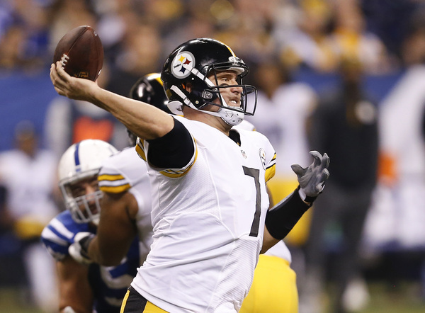 Ben Roethlisberger threw three touchdown passes to Antonio Brown, and Le'Veon Bell ran for another. It was the first time in Brown's career he caught three TD passes in a game.