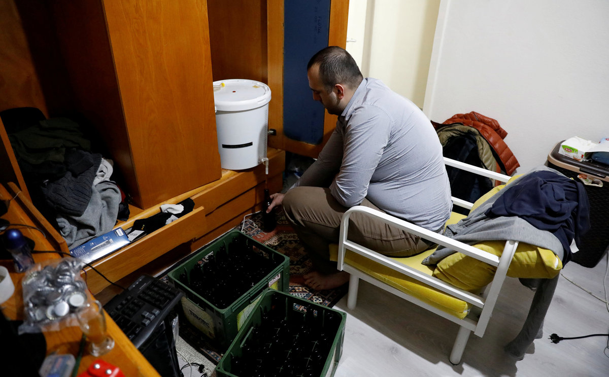 He makes beer from an online kit, while others brew cider, lagers and wine. Some also dilute shop-bought ethanol to make their version of vodka or raki.