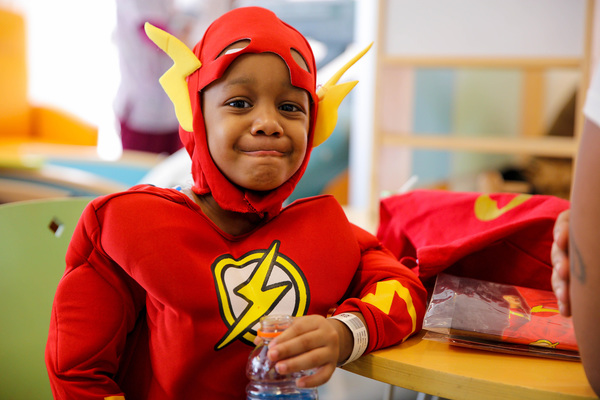 Jovon's renewing health was clear this week, when just in time for Halloween, he was zooming around the floor during his immunoglobulin therapy in his appropriately speedy Flash costume. Nurses trailed behind him so his IV stand, tethered to the port still implanted in his left chest, wouldn't get tangled in his own legs as he scrambled around.