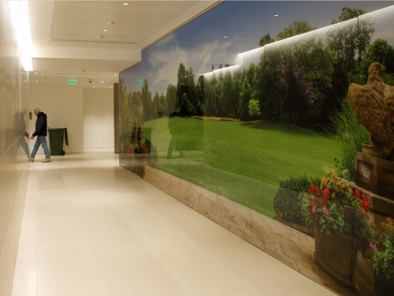 In the consular section of the embassy is a huge photograph of the Winfield House garden, the official residence of the US ambassador to the UK