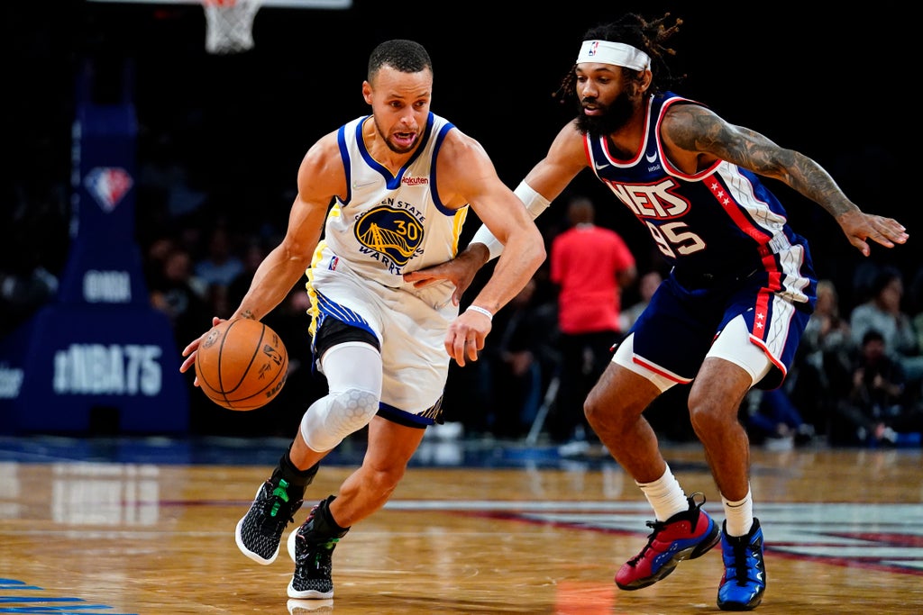 Curry’s big night at the Barclays Centre was aided by 19 points from Andrew Wiggins and 17 from Jordan Poole, while James Harden top scored for the Nets with 24.