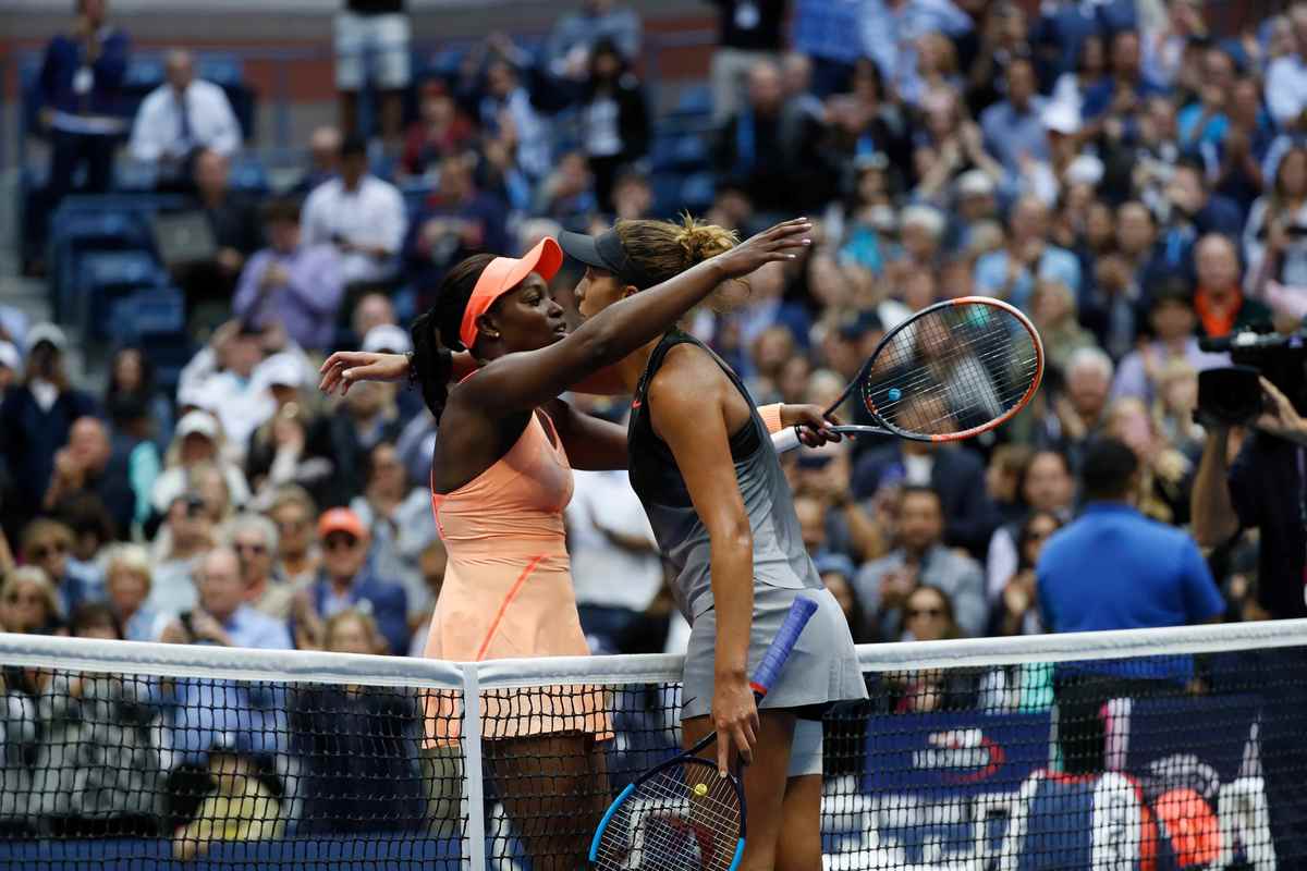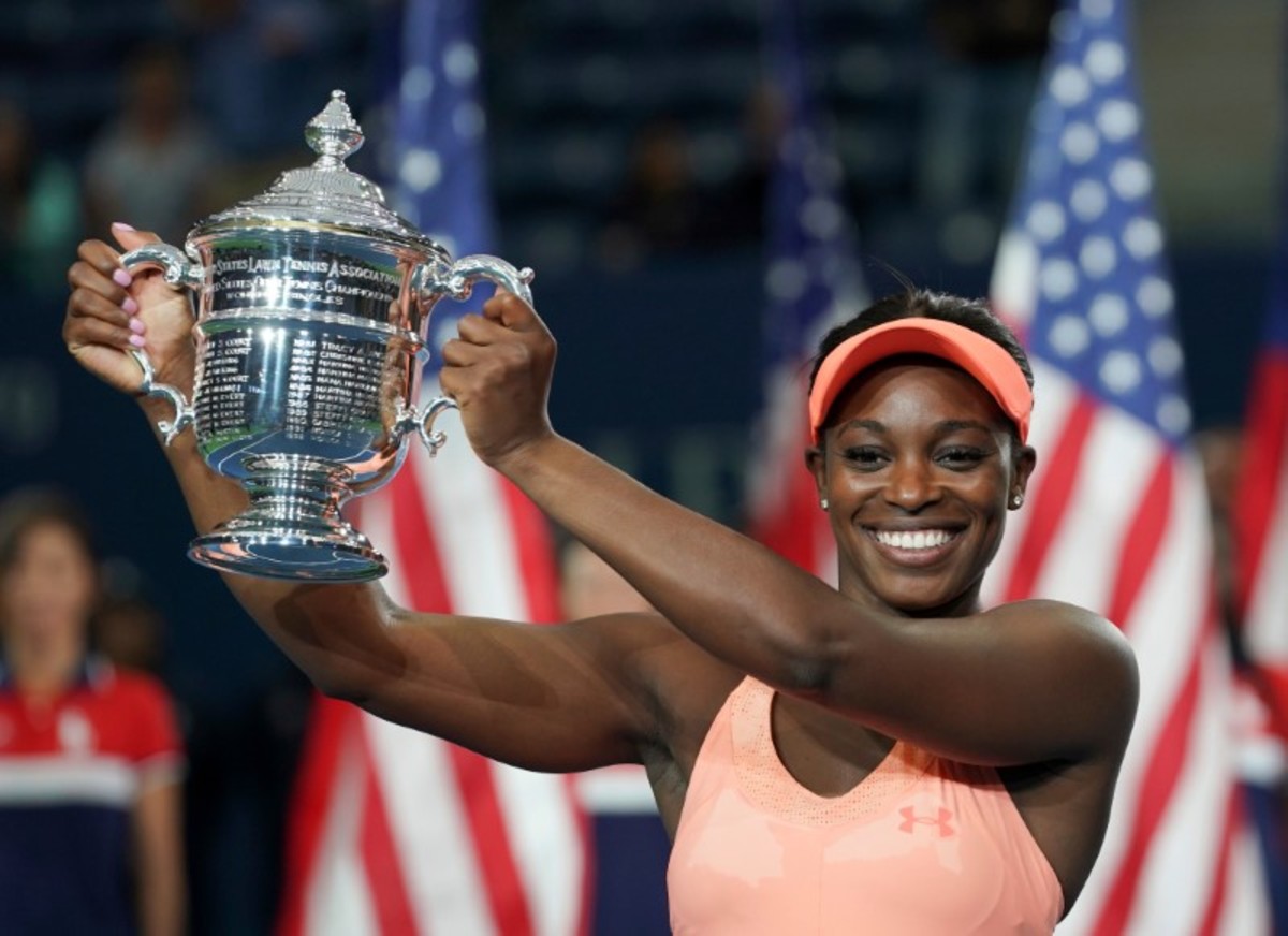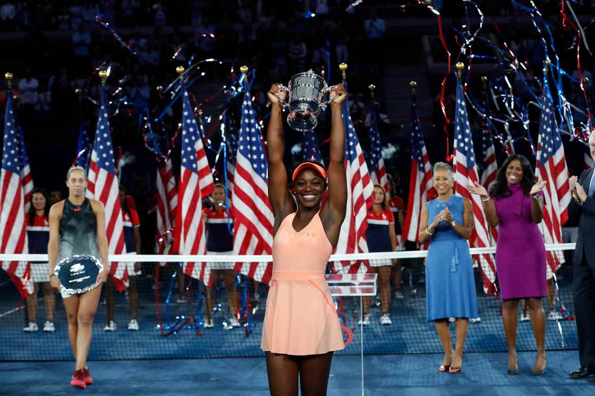 Stephens welcomed the biggest victory of her career with a low-key smile, going into the Arthur Ashe Stadium stands to hug her coach, Kamau Murray, before embracing her mother.