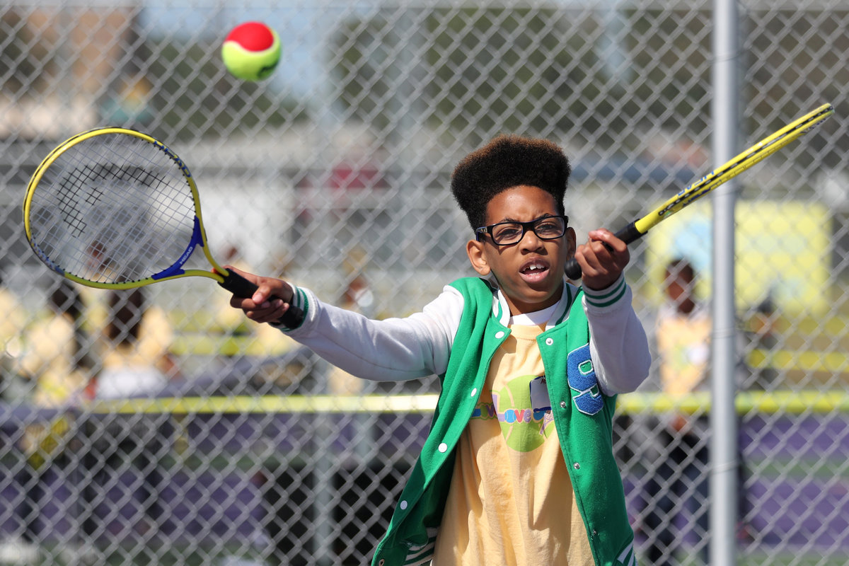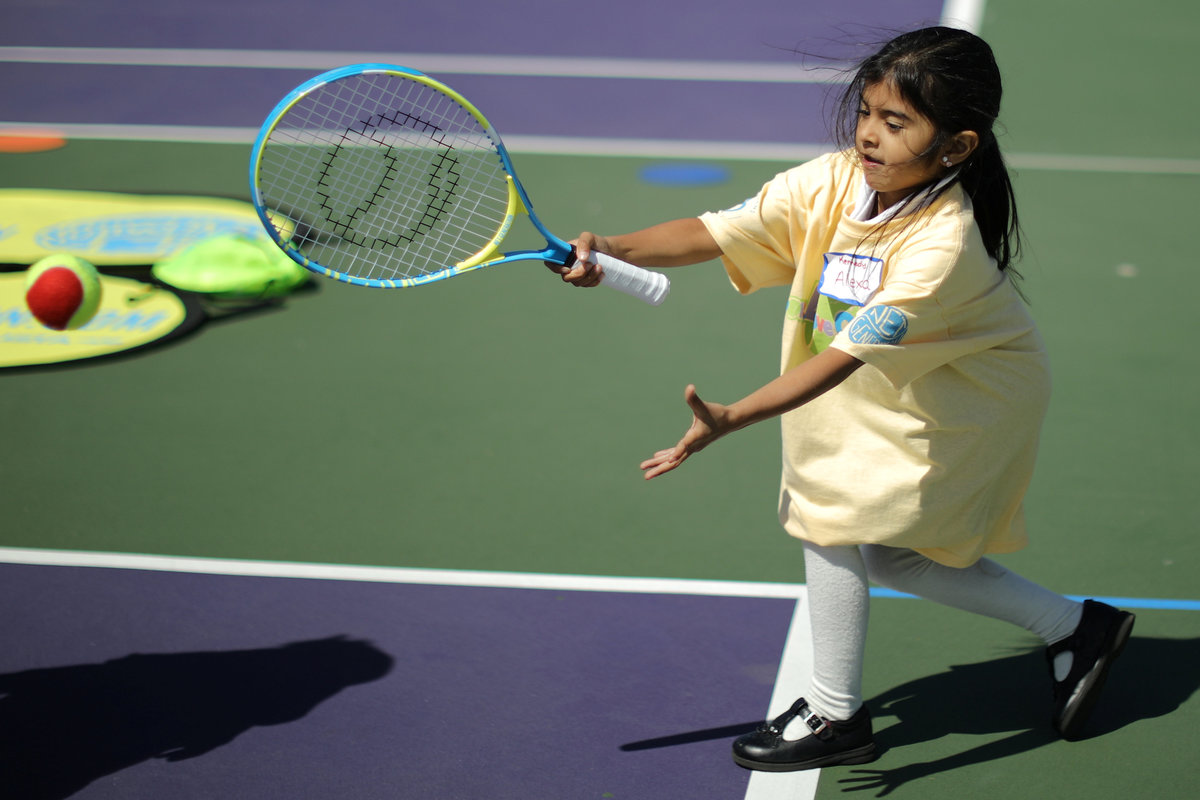 Four hundred elementary and middle school students joined the world number nine for a tennis lesson on a sun-soaked day on the crisp blue courts, which were paid for by Stephens' foundation and the Compton Unified School District.