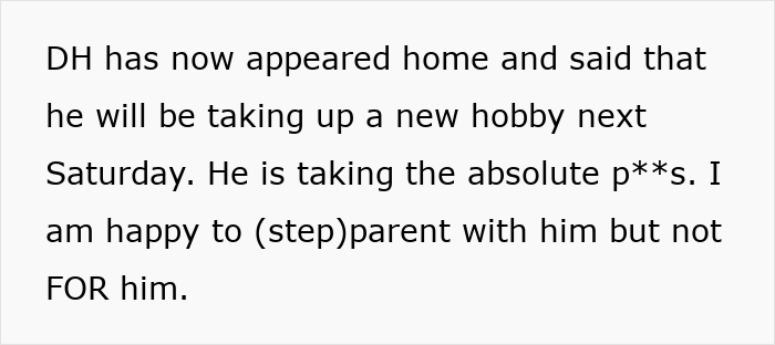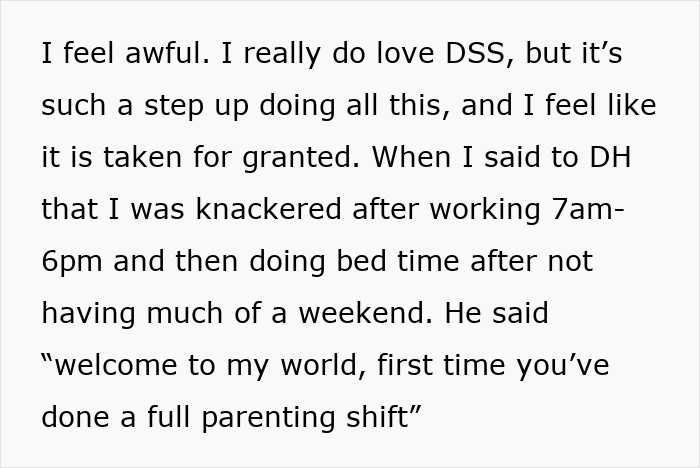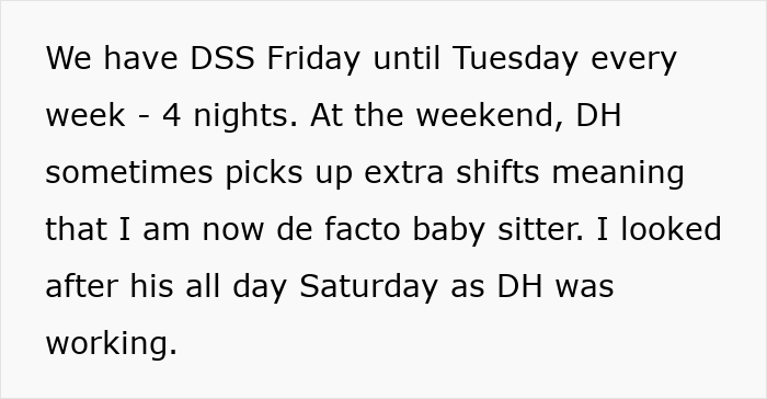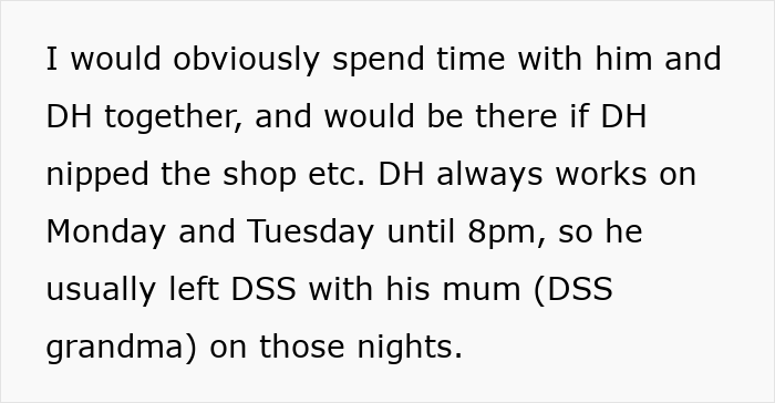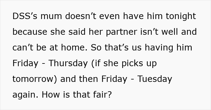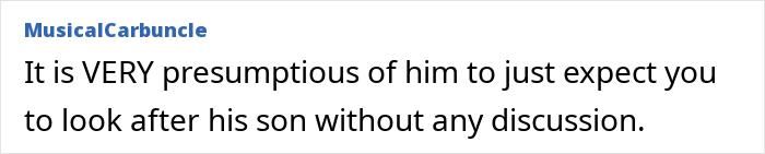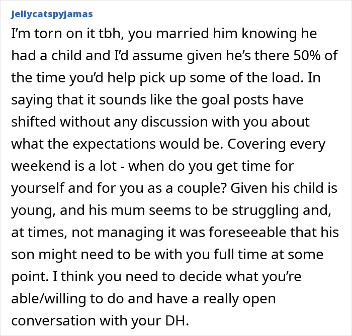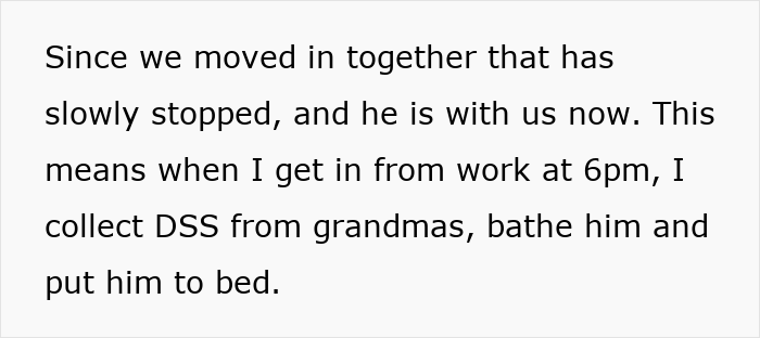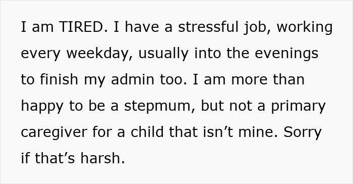The child’s mother has some mental health issues, so he started spending more time with the newly married couple. Also, unlike going to his grandma, the man just expected OP to look after his boy. Dear readers, this is where things take an unfair turn – the poster is burdened with childcare to the point that she feels like the primary caretaker.