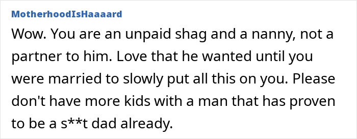 Folks online also told her to make it clear to him that even she needs weekends free from childcare and that he’s being too demanding. Some even questioned whether this is what she wants from life. If you were in her shoes, how would you handle such a situation? We would love to hear your thoughts, so don’t hesitate to type your heart out in the comments below!