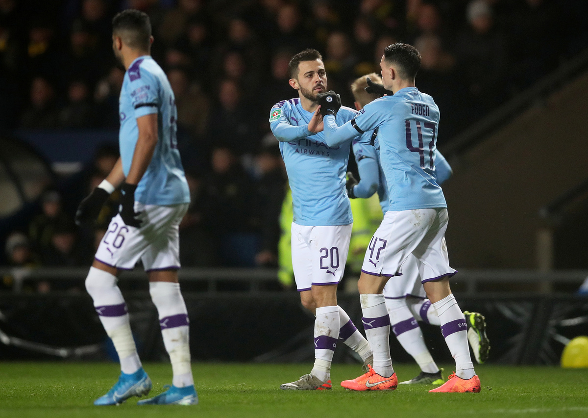 City made eight changes to the team that beat Arsenal on Sunday and lacked their usual authority but they did take the lead in the 22nd minute with Joao Cancelo's deflected effort.