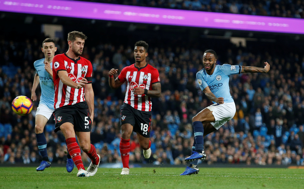 City, who now have a two-point lead over Liverpool, took just six minutes to open the scoring. David Silva fed Leroy Sane on the left and the German’s low cross was turned by Southampton defender Wesley Hoedt into his own net.