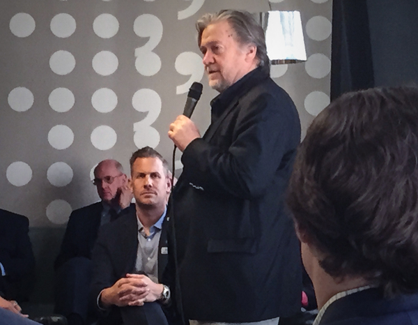 Bannon appeared as part of the Tripp Scott law firm's "Politics & Sunshine" public policy series at which a range of people speak to the firm's lawyers and clients. On Monday, the firm hosted Bob Graham, the former Democratic governor and U.S. senator, and his daughter, Gwen Graham, who is running for governor.
