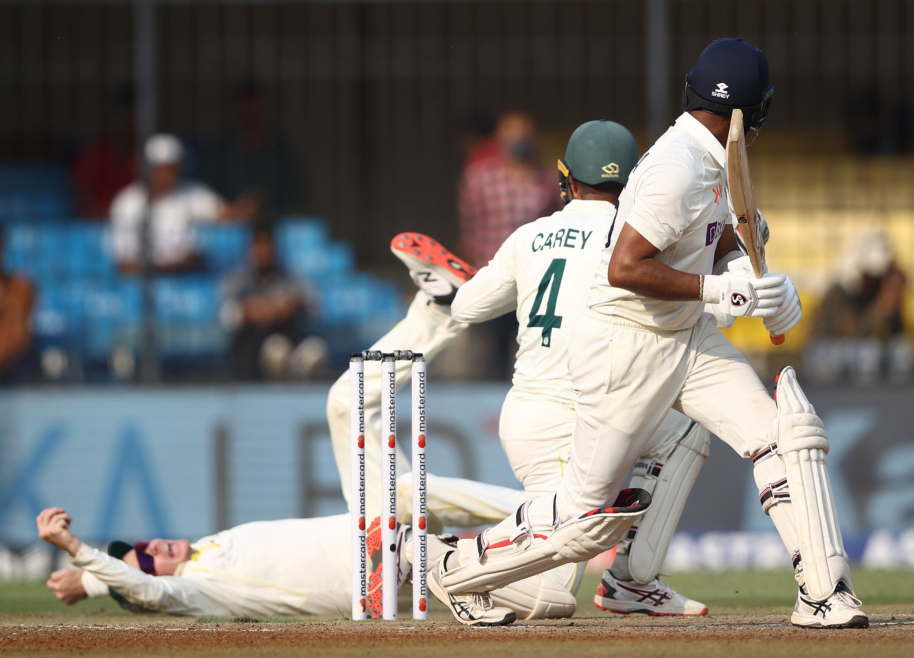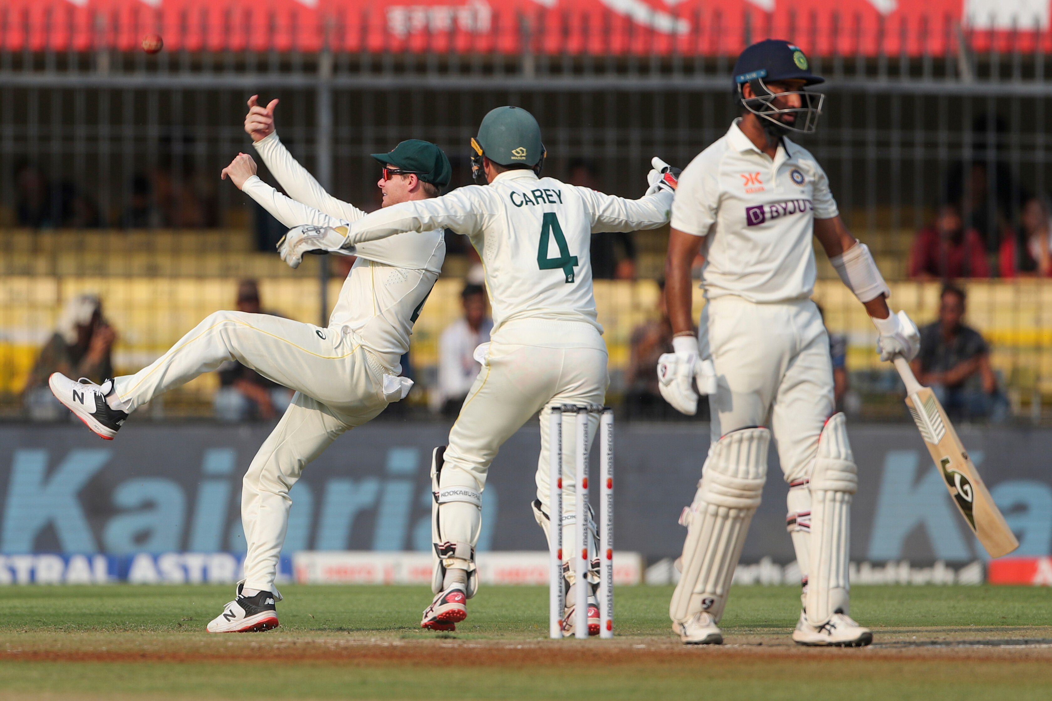 The catch removed the stoic Cheteshwar Pujara, who averages over 50 against Australia, when the veteran number three appeared to be pushing India towards a handy lead.