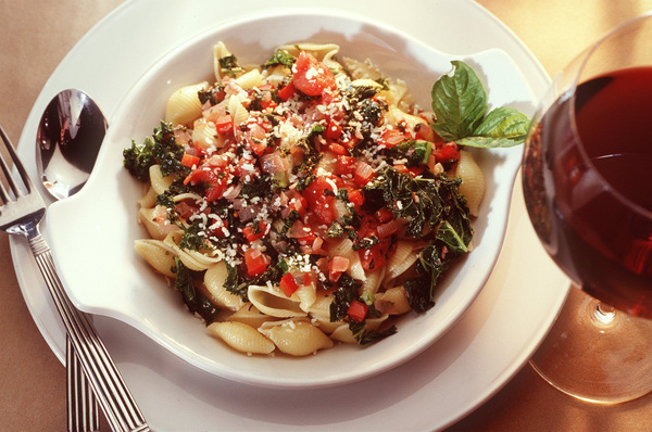 This recipe from the Tribune archives was conceived in 2001, long before kale had its shining moment and subsequent fall. Now that the hearty, nutrition-packed green is off its pedestal, it can get back to the humble work of just being delicious. As in this recipe for pasta shells with wilted kale and sauteed onions and tomatoes. To drink, you'll want wine that can match the greens' bitterness, such as these.