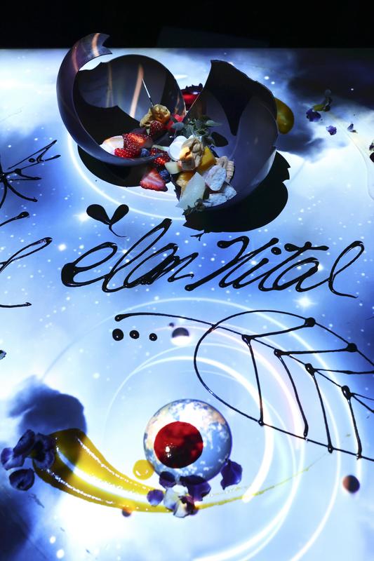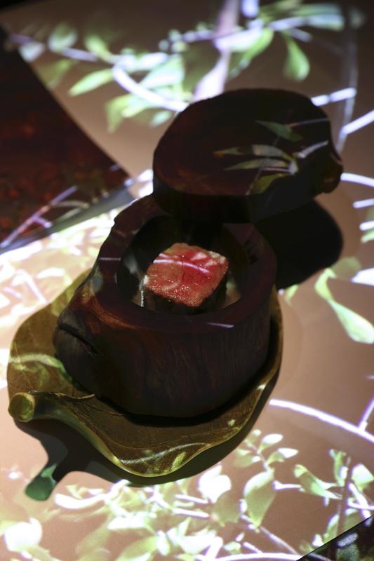 Narumi, 36, cites "immersion as well as strong relationships with images, sounds and food" as conditions for the manipulation of multiple senses. The imagery and staging presented at Elan Vital were a part of the carefully calculated plan utilizing molecular cuisine that creates flavors.