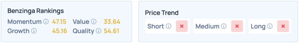 - The stock does poorly across the board in Benzinga’s Edge Stock Rankings, with an unfavorable price trend in the short, medium and long-term. Click here for deeper insights into the stock, its peers and competitors.