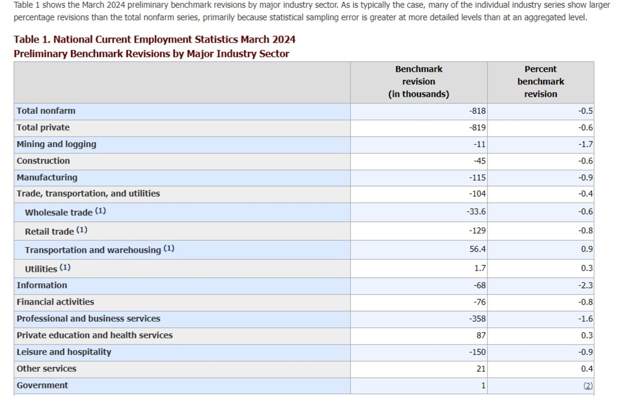 The Bureau of Labor Statistics trimmed around 818,000 jobs from its estimate of gains over the twelve months ending in March, a figure that was largely in-line with economists' forecasts.