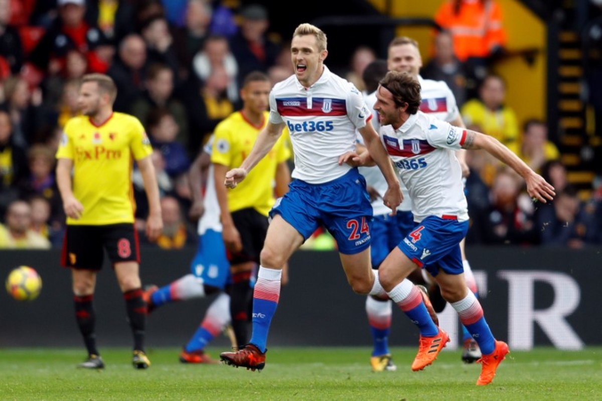 Soccer Football - Premier League - Watford vs Stoke City - Vicarage Road, Watford, Britain - October 28, 2017 Stoke City's Darren Fletcher scores their first goal REUTERS/Peter Nicholls