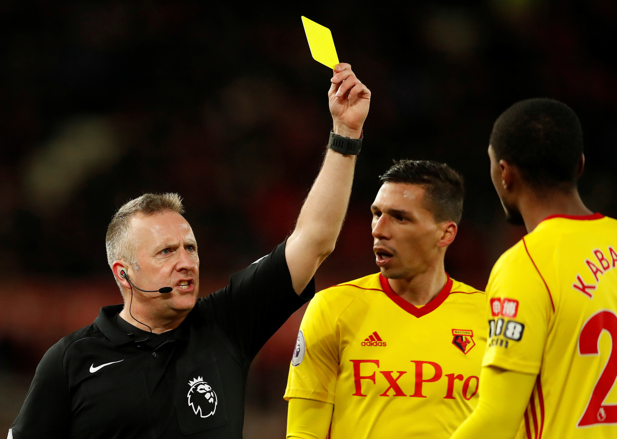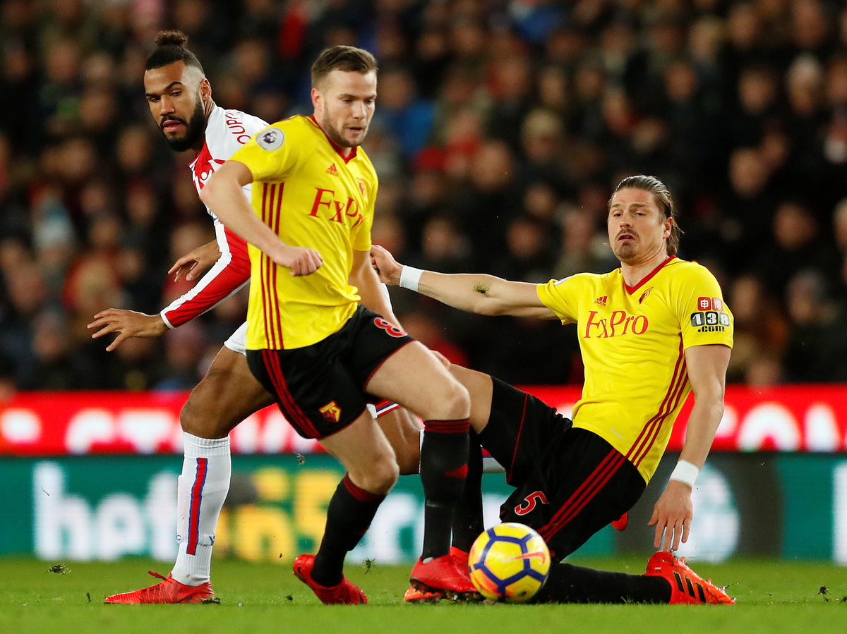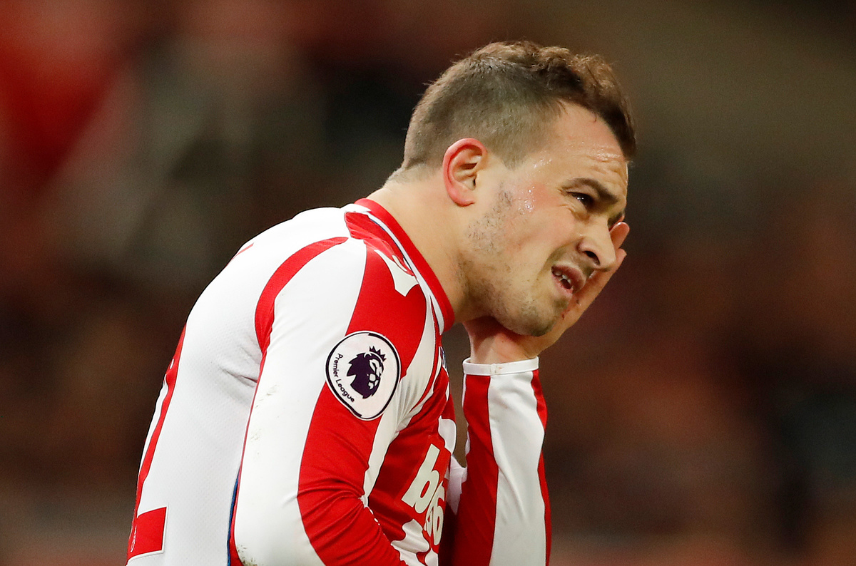Soccer Football - Premier League - Stoke City vs Watford - bet365 Stadium, Stoke-on-Trent, Britain - January 31, 2018 Watford's Orestis Karnezis in action with Stoke City's Ryan Shawcross Action Images via Reuters/Andrew BoyersSoccer Football - Premier League - Stoke City vs Watford - bet365 Stadium, Stoke-on-Trent, Britain - January 31, 2018 Watford's Gerard Deulofeu REUTERS/Peter PowellSoccer Football - Premier League - Stoke City vs Watford - bet365 Stadium, Stoke-on-Trent, Britain - January 31, 2018 Watford's Gerard Deulofeu in action with Stoke City's Eric Maxim Choupo-Moting Action Images via Reuters/Andrew Boyers Soccer Football - Premier League - Stoke City vs Watford - bet365 Stadium, Stoke-on-Trent, Britain - January 31, 2018 Stoke City's Xherdan Shaqiri and Watford's Troy Deeney Action Images via Reuters/Andrew Boyers Soccer Football - Premier League - Stoke City vs Watford - bet365 Stadium, Stoke-on-Trent, Britain - January 31, 2018 Stoke City's Xherdan Shaqiri holds his face Action Images via Reuters/Andrew Boyers Soccer Football - Premier League - Stoke City vs Watford - bet365 Stadium, Stoke-on-Trent, Britain - January 31, 2018 Watford's Christian Kabasele is shown a yellow card by referee Jonathan Moss Action Images via Reuters/Andrew Boyers Soccer Football - Premier League - Stoke City vs Watford - bet365 Stadium, Stoke-on-Trent, Britain - January 31, 2018 Watford's Adrian Mariappa and Sebastian Prodl in action with Stoke City's Eric Maxim Choupo-Moting Action Images via Reuters/Andrew Boyers