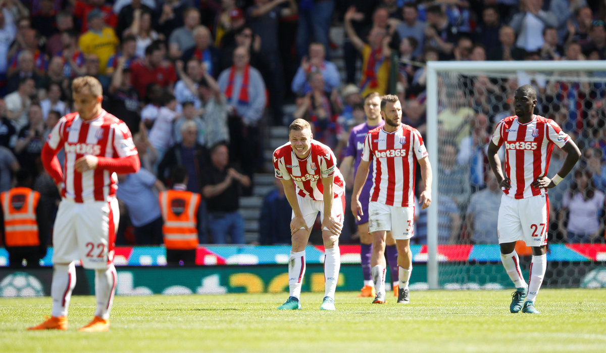 Stoke City were relegated from the Premier League on Saturday after their dismal season culminated in them giving up a first-half lead against Crystal Palace before succumbing to a deserved 2-1 defeat.