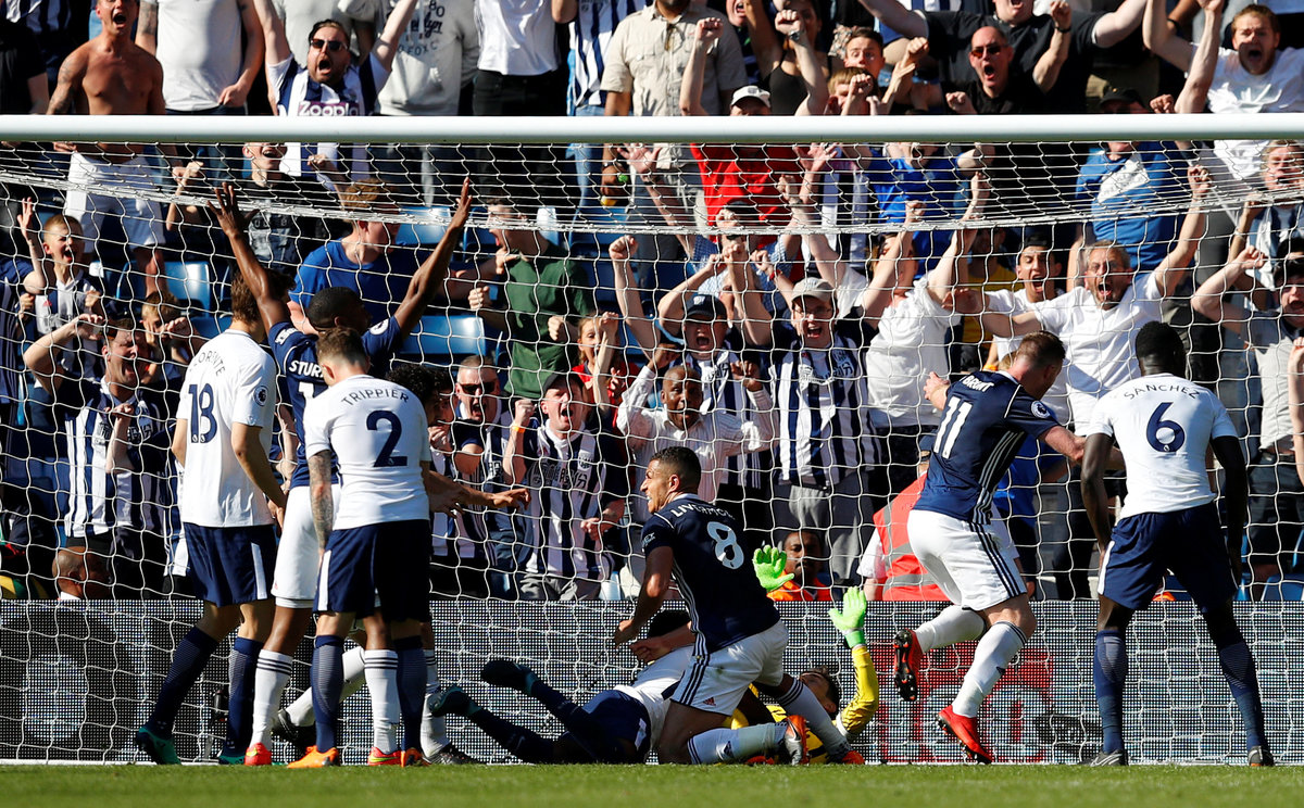 Yet never-say-die West Bromwich Albion kept their hopes alive of pulling off one of the great escapes with a last-gasp 1-0 win over top-four aristocrats Tottenham Hotspur.
