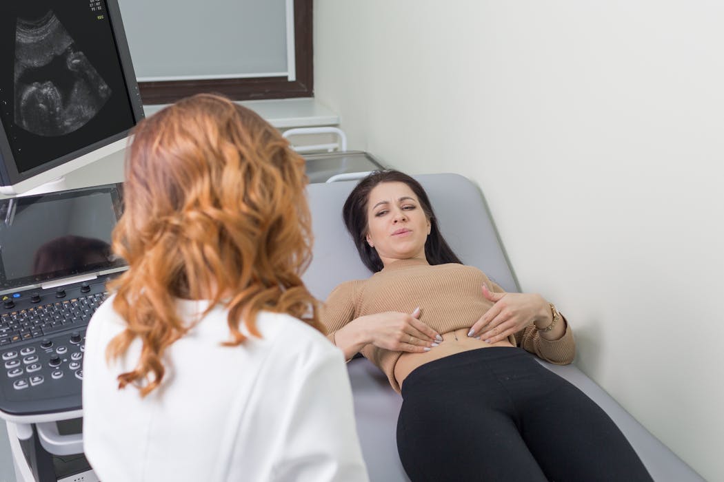 Some women carry a lithopaedion without symptoms for many years. Others develop complications caused by its presence in the abdomen. These include pelvic abscesses, which are collections of infected fluid, twisting or obstruction of the intestines that interfere with digestion, fistula formation – meaning abnormal connections between organs – and other abdominal symptoms such as pain or swelling.