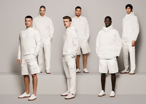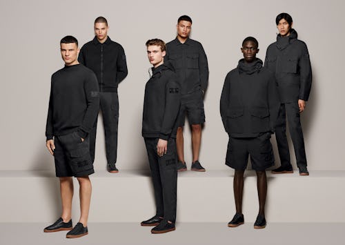 Knits from the collection are sewn in cashmere for luxe softness and designed with a militaristic design perspective. The fleeces are made with heavy cotton, following the brand’s affinity for warmer tech in the colder months. Choose from cream, dark gray, or black color palettes with features including cargo pockets, high-neck collars and hoods, and a range of fabrics to match your vibe.