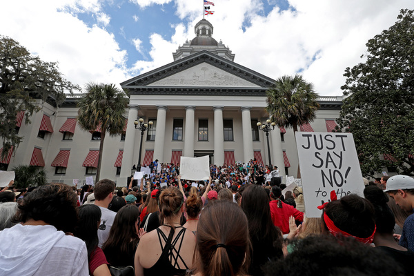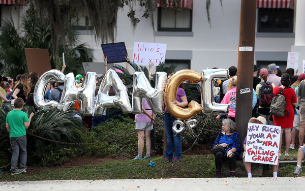 Many of the students went straight from the funerals of Carmen Schentrup, 16, and Gina Montalto, 14, two of 17 students and teachers killed on Feb. 14 at the Parkland school. Former student Nikolas Cruz, 19, is being held in Broward County jail, accused of unleashing a bloodbath with an AR-15 rifle in and around the school's freshman building.