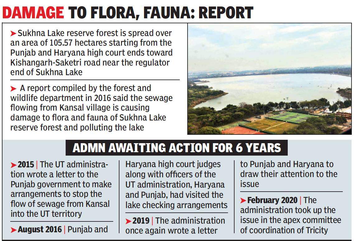 CHANDIGARH: The UT administration has written a letter to the Punjab government to stop the flow of untreated water of Kansal village into the city’s forest area behind Sukhna Lake after a nudge from UT administrator V P Singh Badnore.