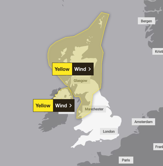 Yellow weather warnings for heavy wind have been put in place from Friday at 6pm, which will last late into Saturday night. The strongest winds currently look more likely over parts of northern Scotland, leading to difficult driving conditions for high-sided vehicles on prone routes such as crosswinds on exposed or high-level routes. Spells of heavy rain will also drench parts of western Scotland.