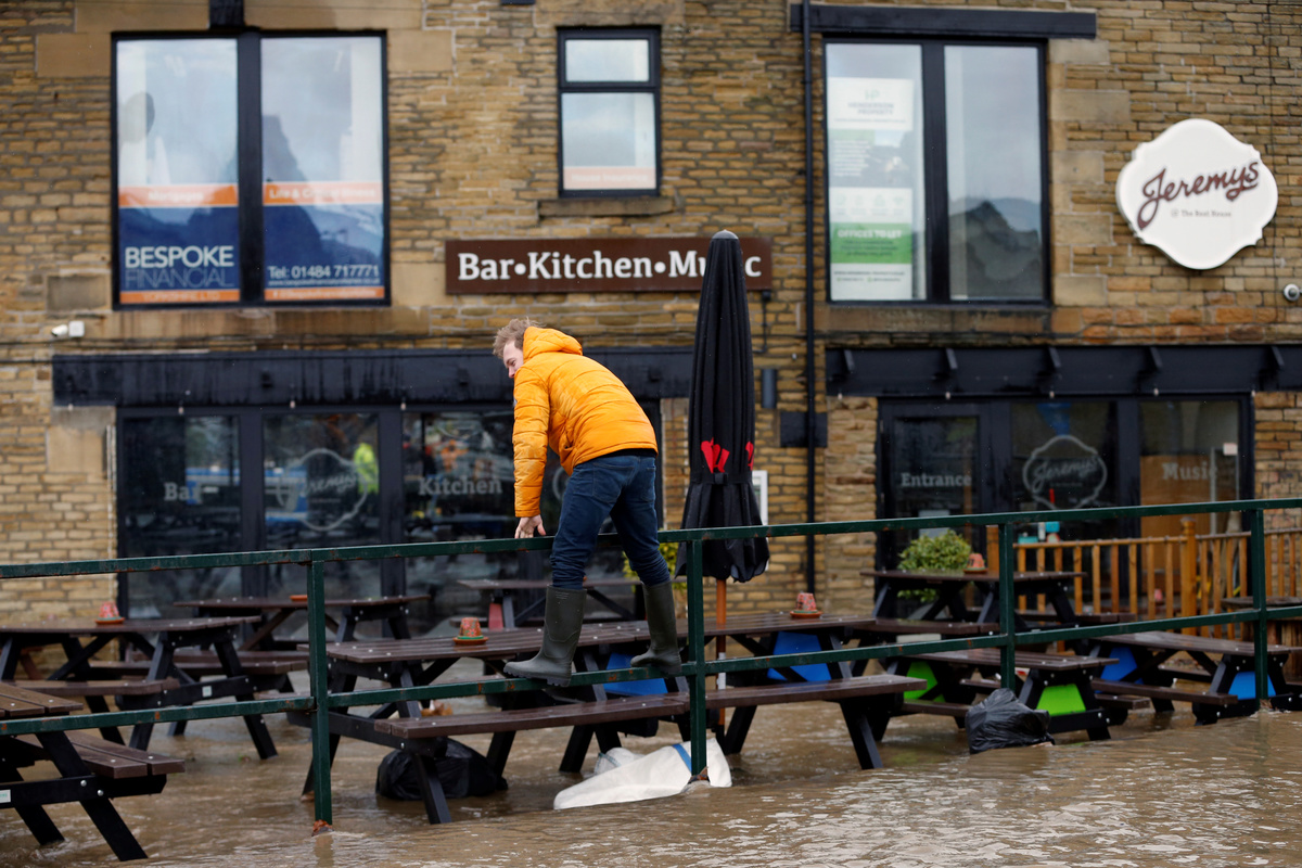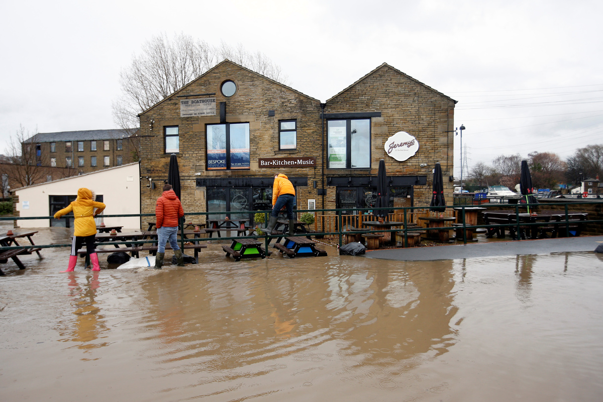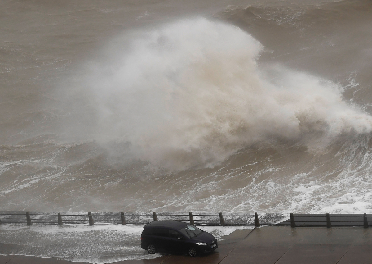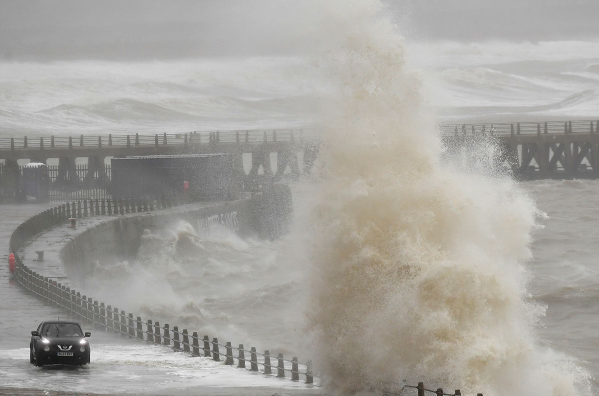 A felled tree lies on Clapham Common in south London as Storm Ciara hits large parts of Britain February 9, 2020. REUTERS/Dylan MartinezCars drive through floodwater as hurricane-force winds and rain affected the country's transport network leading to disruptions and prompting warnings of power cuts and a risk to life, in Manchester, Britain February 9, 2020. REUTERS/Jon SuperPeople climb a railing, trying to avoid the floodwater, outside a restaurant in Brighouse, West Yorkshire, Britain February 9, 2020. REUTERS/Ed SykesA man avoids the floodwater outside a restaurant in Brighouse, West Yorkshire, Britain February 9, 2020. REUTERS/Ed SykesA man walks through the floodwater next to abandoned cars in Brighouse, West Yorkshire, Britain February 9, 2020. REUTERS/Ed SykesA man walks his dog trough a windswept Clapham Common in south London as Storm Ciara hits large parts of Britain February 9, 2020. REUTERS/Dylan MartinezA flooded road is seen in Rawtenstall, Lancashire as hurricane-force winds and rain have affected Britain's transport network leading to disruptions and prompting warnings of power cuts and a risk to life, February 9, 2020. REUTERS/Jon SuperCars drive through floodwater as hurricane-force winds and rain affected the country's transport network leading to disruptions and prompting warnings of power cuts and a risk to life, in Manchester, Britain February 9, 2020. Storm Ciara has brought heavy rain and winds, caused widespread flooding and has led to the cancellation of sporting events. REUTERS/Jon SuperA car drives through a flood water during Storm Ciara in Brighouse, West Yorkshire, Britain, Febraury 9, 2020 in this screengrab obtained from video. Alan Burton via REUTERSLarge waves and sea spray caused by Storm Ciara hit vehicles being driven along the seafront in Newhaven, Britain February 9, 2020. REUTERS/Toby MelvilleA lifeboat sails in high waves and strong winds caused by Storm Ciara, in the English Channel in Newhaven, Britain February 9, 2020. REUTERS/Toby MelvilleLarge waves and sea spray caused by Storm Ciara hit vehicles being driven along the seafront in Newhaven, Britain February 9, 2020. REUTERS/Toby MelvilleA lifeboat sails in high waves and strong winds caused by Storm Ciara, in the English Channel in Newhaven, Britain February 9, 2020. REUTERS/Toby MelvilleA body boarder rides the stormy waves at Broad Haven, Pembrokeshire, Wales, Britain as Storm Ciara approaches the Welsh coastline, February 8, 2020. REUTERS/Rebecca NadenA lifeboat sails in high waves and strong winds caused by Storm Ciara, in the English Channel in Newhaven, Britain February 9, 2020. REUTERS/Toby Melville