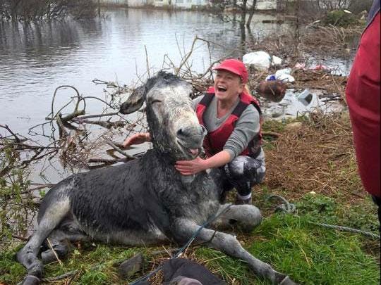 A drowning donkey was rescued from severe floods caused by Storm Desmond in Ireland.