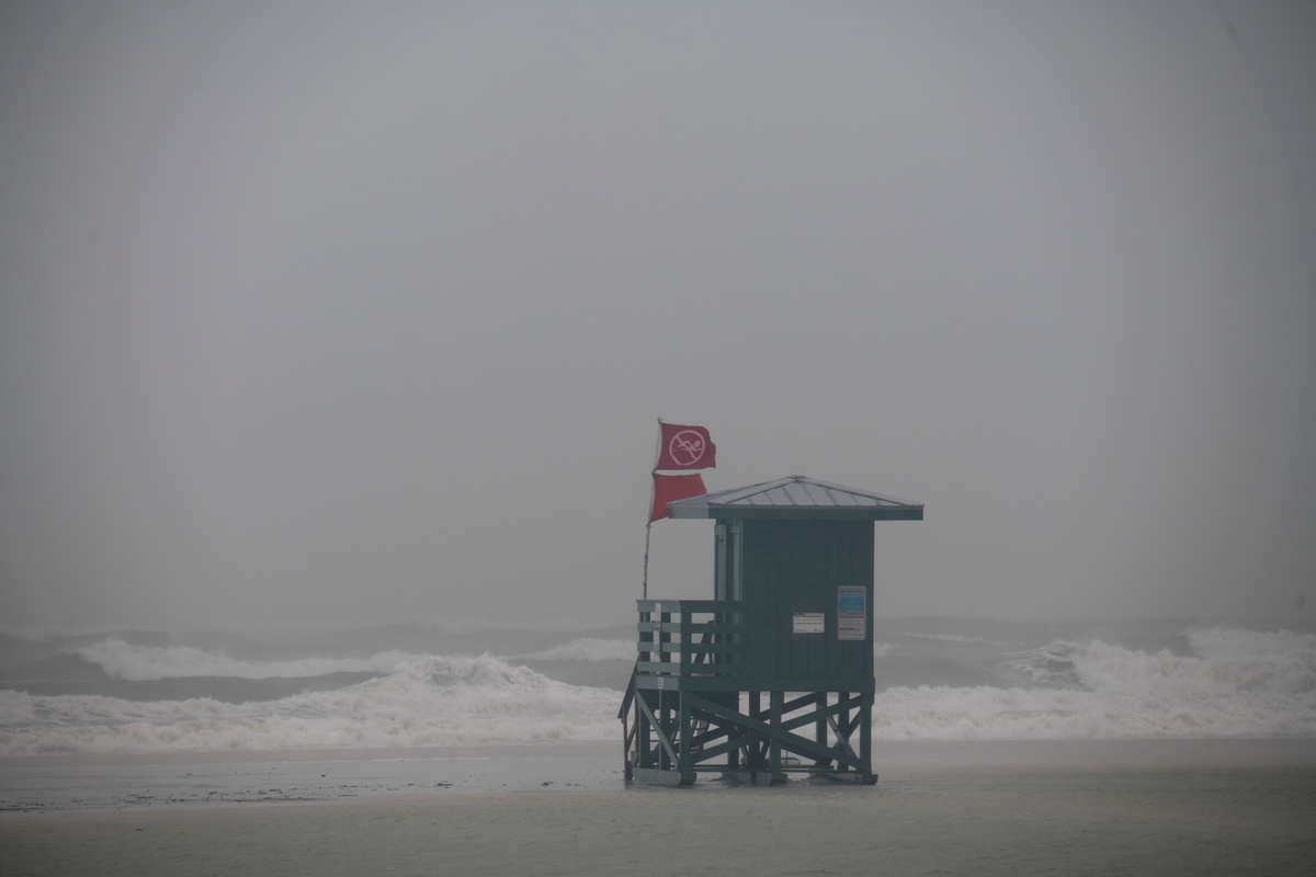 Tropical Storm Eta drenched Florida's west coast on Thursday after making landfall north of Tampa Bay with 50 mile-per-hour (80 kph) winds, but the system weakened slightly as it moved across the northeastern part of the state and into the Atlantic.