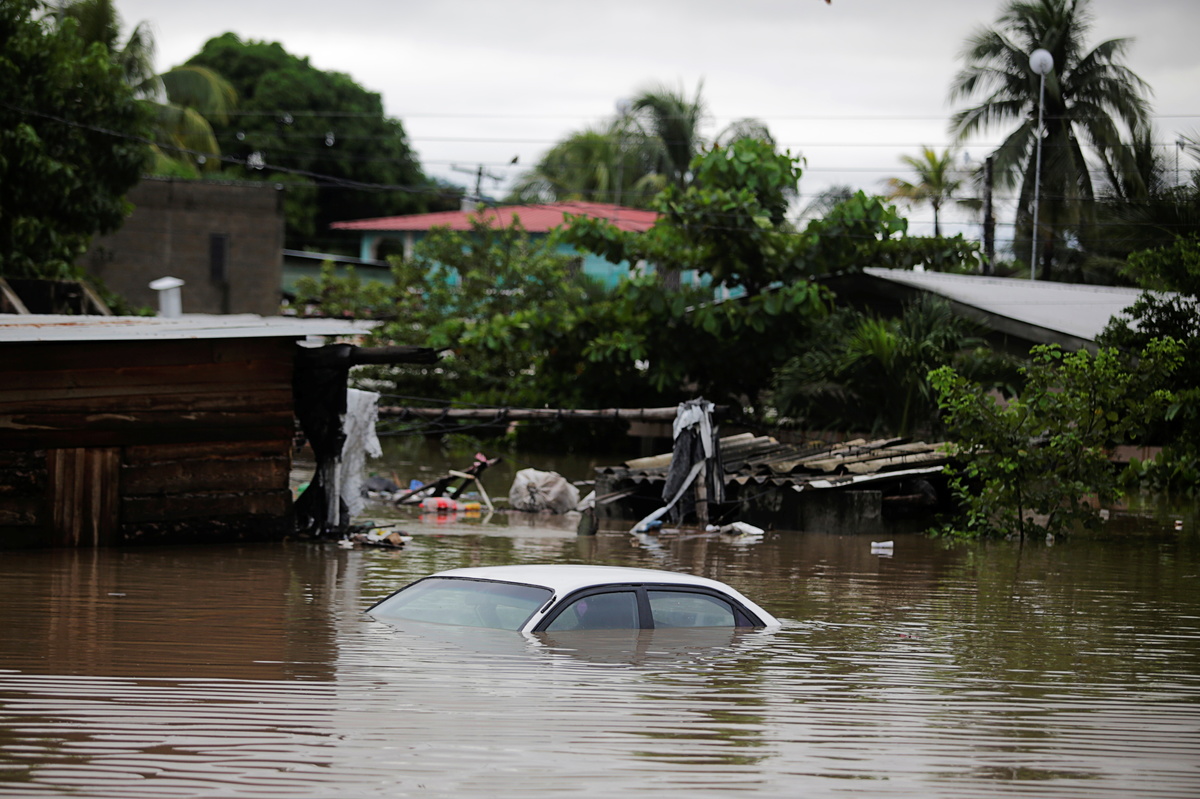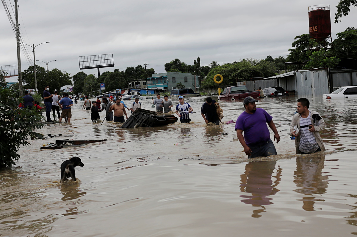 Families waded through flooded streets of the northern Honduran city of San Pedro Sula, while cars sat almost submerged in parts of the central Guatemalan city of San Pedro Carcha, television footage and images posted on social media showed.